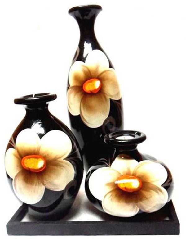 DECORATIVE FLORAL CLAY CANDLE VASES SET **|**|** DECORATIVE FLORAL CLAY CANDLE VASES SET ; MSRP: $150