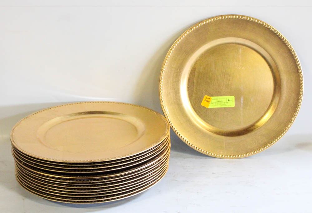 DECORATIVE GOLD CHARGER PLATES- SET OF 15 PLASTIC