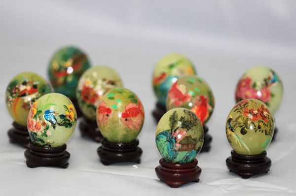 DECORATIVE HANDPAINTED EGGS **|**|** DECORATIVE HANDPAINTED EGGS; STONE SERPENTINE; HAND PAINTED; SET OF 10 ; MSRP: $150