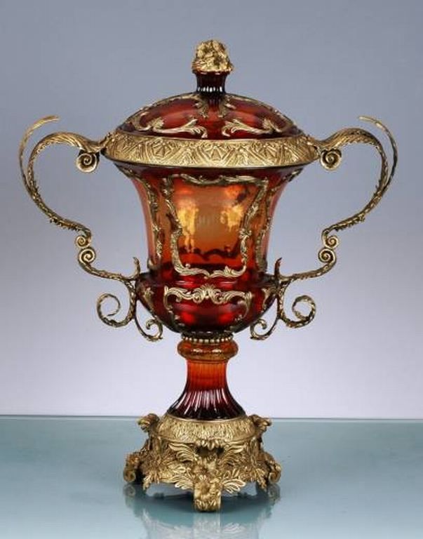 TRANSLUCENT POLY RESIN DECORATIVE LIDDED URN - HAND PAINTED DECORATION - 18L"x11.6W"x23.6H"