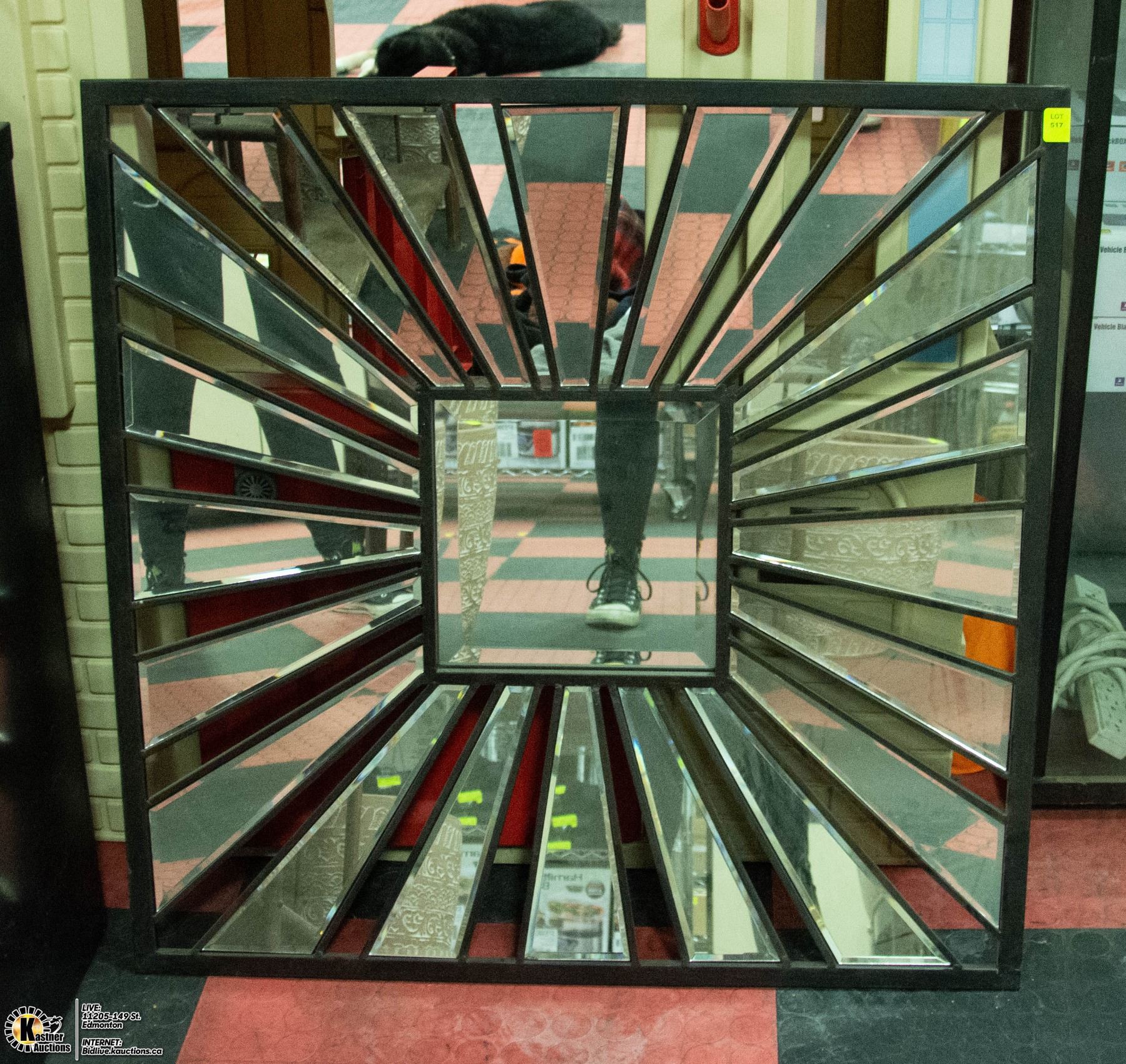 DECORATIVE METAL FLOOR MIRROR.