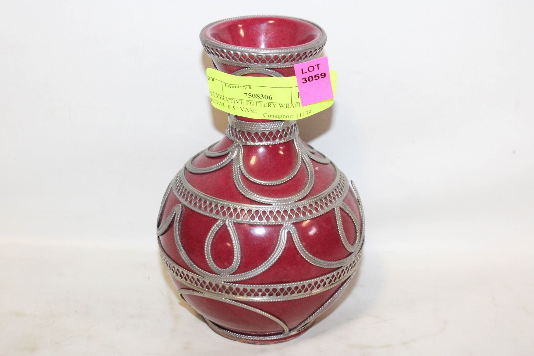 DECORATIVE POTTERY WRAPPED METAL 6.5" VASE