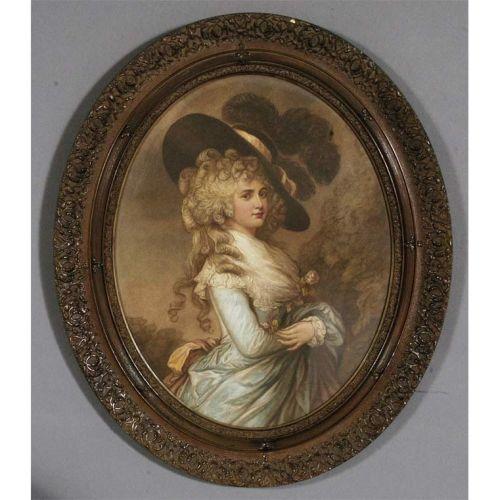 DECORATIVE PRINT AFTER GAINSBOROGH, 27"x21" oval circa 1910 CONDITION REPORT: excellent- very minor losses to frame.