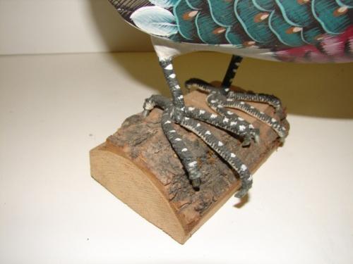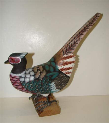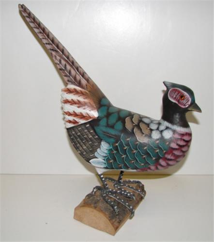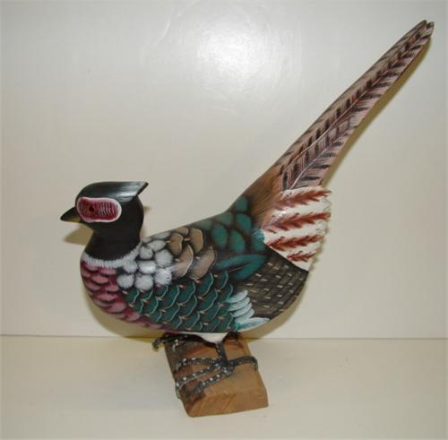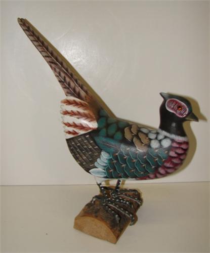 DECORATIVE QUAIL CARVING. Wooden base. Unknown carver. Shows some cracking to wood near tail. 11.25" H