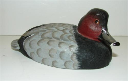 DECORATIVE REDHEAD CARVING. Signed on bottom “Red Head Drake by C. Steiner-1/19/88”. 4.5” L