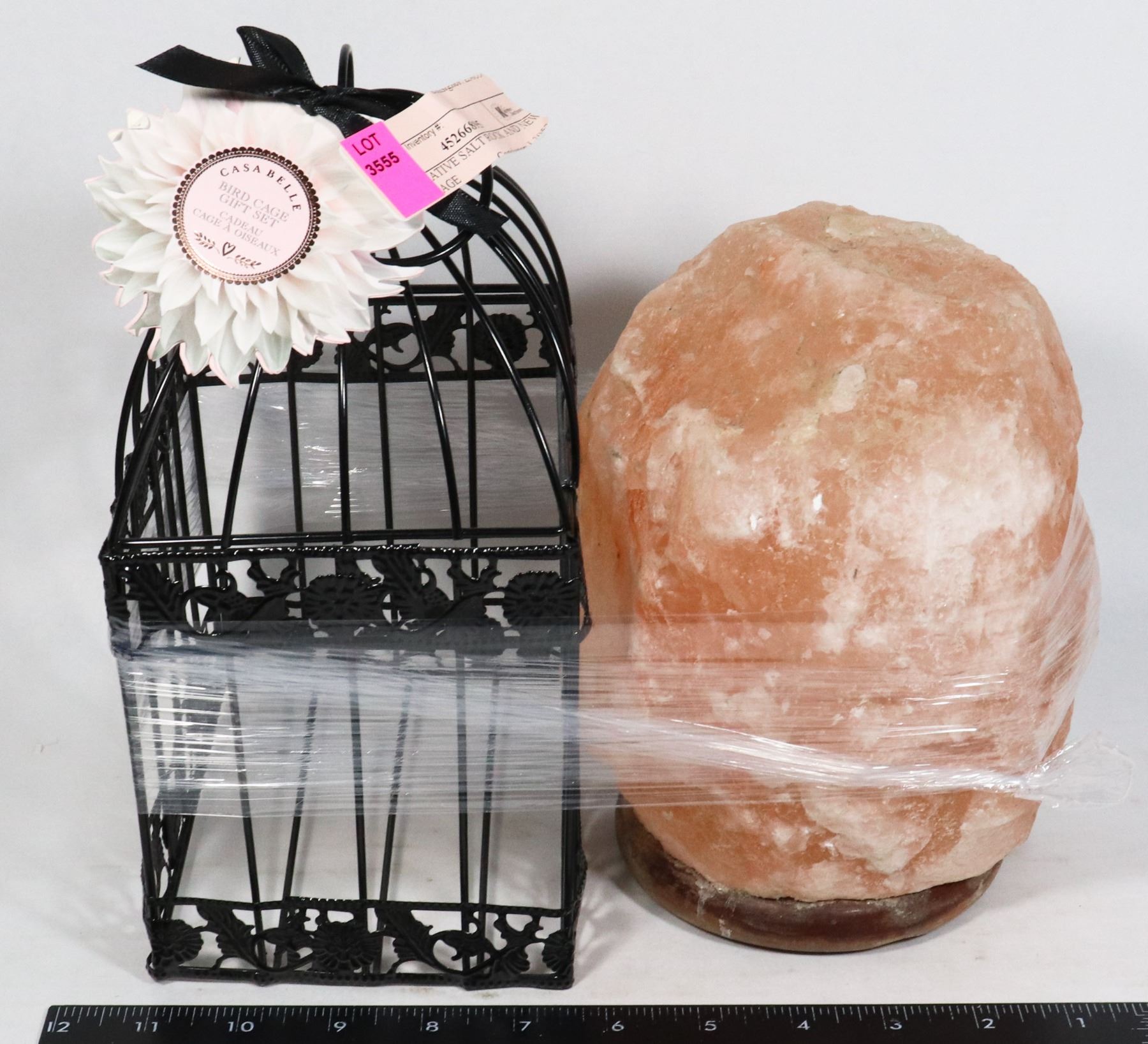 DECORATIVE SALT ROCK AND NEW BIRD CAGE