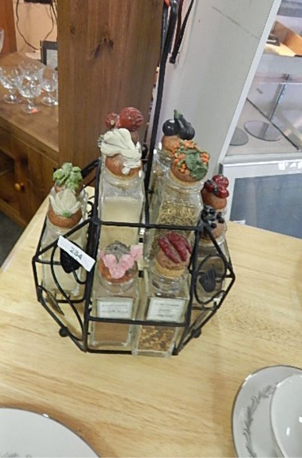 DECORATIVE SPICE RACK AND CONTENTS