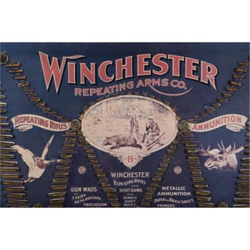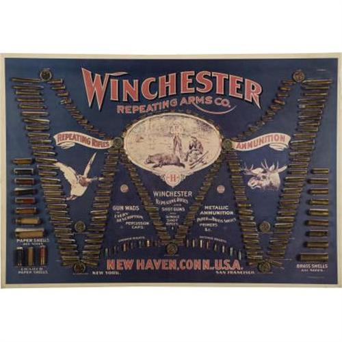 <B>DECORATIVE WINCHESTER CARTRIDGE BOARD</B></I> - Double W Bullet Board; original cartridges attached to newer backboard. Great gun room addition; framed to 41½” x 57½”.<BR><BR><b>Shipping:</b> Requires 3rd Party Shipping (<a target="_blank" href="http://www.heritageauctions.com/common/shipping.php">view shipping information</a>)