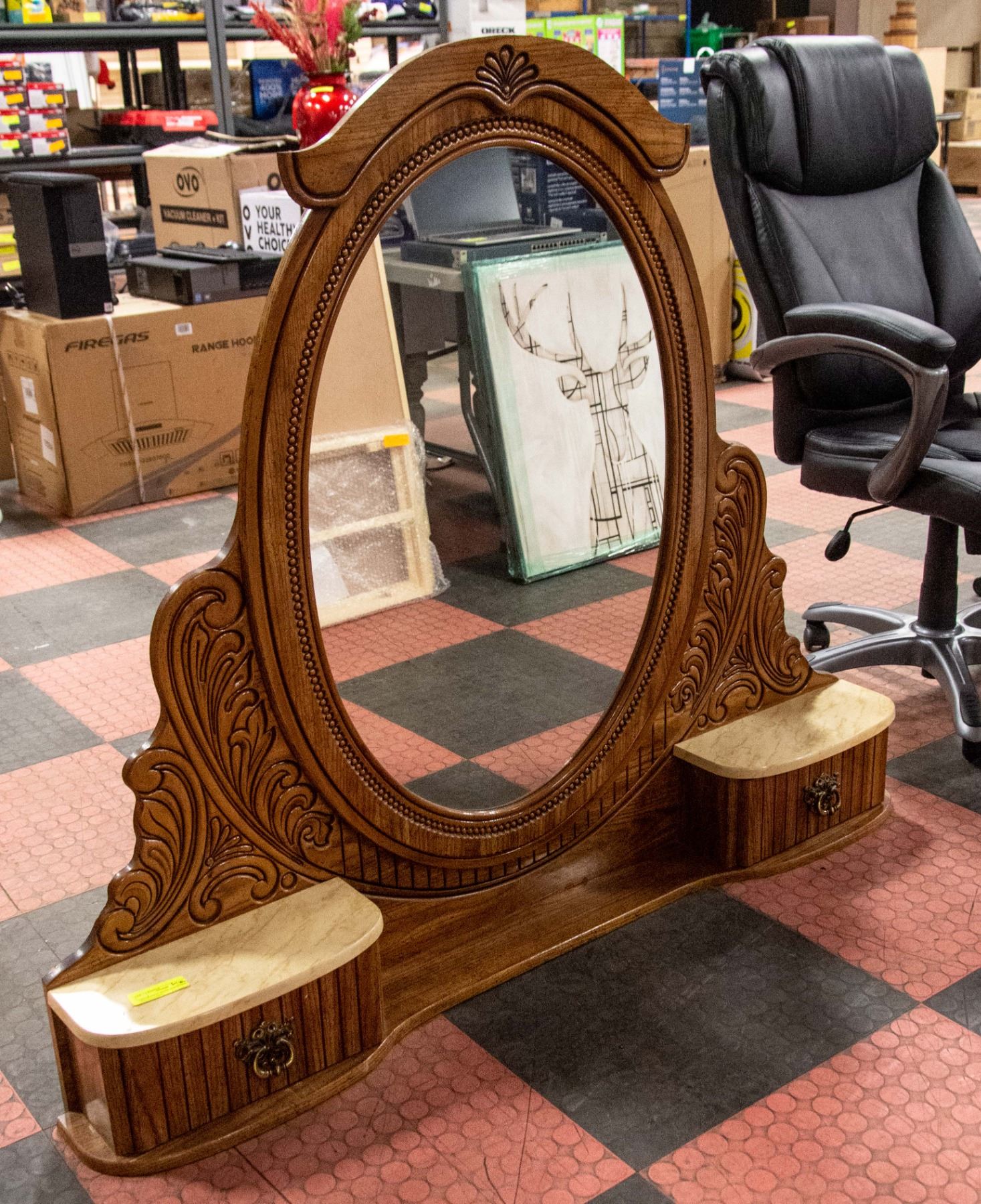 OVAL MIRROR - FOR DRESSER OR CABINET - 2-DOOR STORAGE CABINETS WITH MARBLE LOOK TOPS (53.5"L X 8"W X 46"H) **ALL ITEMS MUST BE REMOVED BY 5PM SATURDAY, FEBRUARY 18TH 2023. ALL REMAINING ITEMS WILL BE SUBJECT TO A $6.00 PER DAY STORAGE CHARGE. ANY ITEMS REMAINING AFTER MONDAY, MARCH 6TH, 2023 WILL BE CONSIDERED FORFEITED. NO REFUNDS WILL BE ISSUED FOR FORFEITED ITEMS. TO SCHEDULE A PICK UP APPOINTMENT CLICK HERE