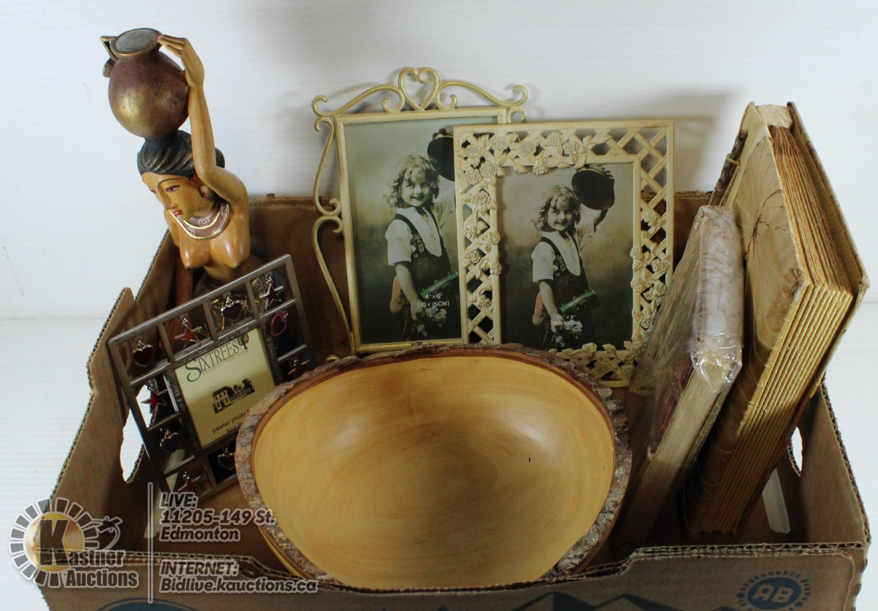 DECORATIVE WOOD & METAL ITEMS- ASST. BOX LOT