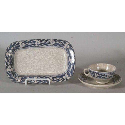 DEDHAM POTTERY (2) with Iris border 10" bread plate and cup and saucer (6" width on saucer) CONDITION REPORT: rubs to back of bread plate. PACKING AND SHIPPING: We offer packing (double boxed in most cases) and shipping of this item within the Continental United States by USPS or UPS (our choice- boxes over 30lbs or oversized may be recalculated based on buyer's location), NOT INCLUDING INSURANCE (it will be added when we know the sales price) for $30 We will adjust shipping when lots can be combined.