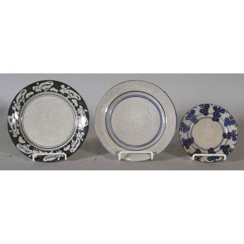 DEDHAM POTTERY (3) 8 1/2" plate with Snow tree border, 6" plate with grape border and 8 1/2" plate with line border CONDITION REPORT: no problems. PACKING AND SHIPPING: We offer packing (double boxed in most cases) and shipping of this item within the Continental United States by USPS or UPS (our choice- boxes over 30lbs or oversized may be recalculated based on buyer's location), NOT INCLUDING INSURANCE (it will be added when we know the sales price) for $30 We will adjust shipping when lots can be combined.