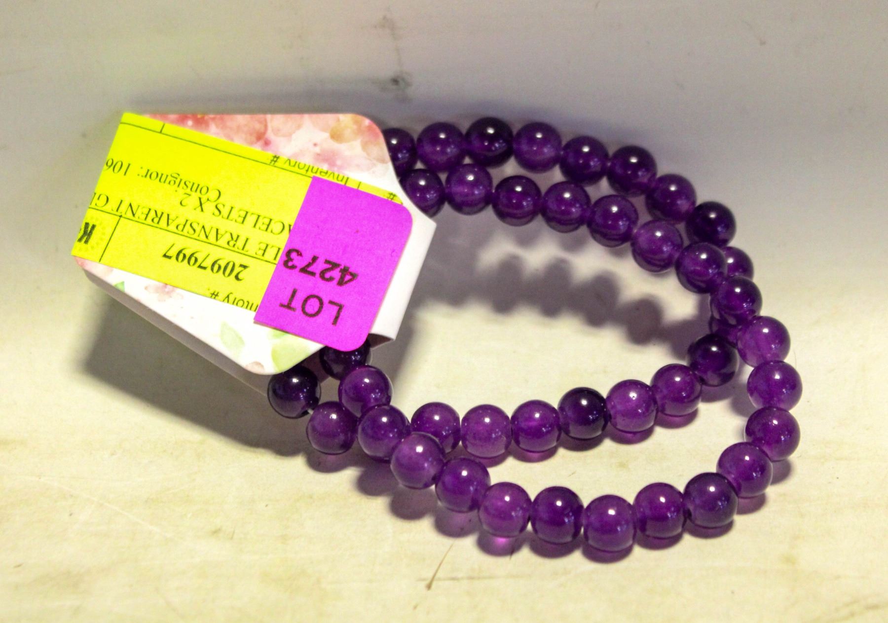 DEEP PURPLE TRANSPARENT GLASS BEADS BRACELETS X 2