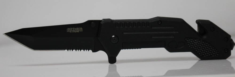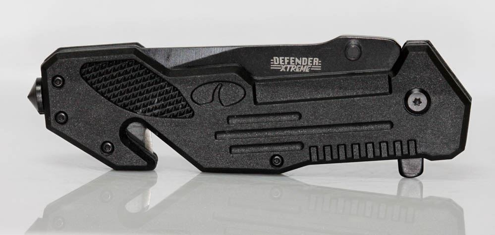 DEFENDER XTREME FOLDING KNIFE W/ INPRINT OF GUN ON HAND **|**|** DEFENDER XTREME FOLDING KNIFE W/ INPRINT OF GUN ON HANDLE AND A WINDOW BREAKER AND SEAT BELT CUTTER