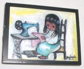 DEGRAZIA MAGNET SIGNED "DEGRAZIA" *INDIAN GIRL W/ SEWING MACHINE*!! MAGNET CAME OUT OF SAFE!! ***Coin, Currency & All Items Listed in this auction - Grades, Conditions and Values are not Safe Deposit Coins LLC Responsibilty. Grades, Condition and Values are determined by Consigner(s) & Buyers ONLY