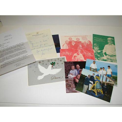 LOT OF 12 PIECES OF DELAWARE HOLIDAY EPHEMERA. Consists of Christmas cards from Senator Joe Biden & Family (3), Senator Tom Carper & Family (2), State Treasurer Jack Markell & Family, Senator John J. Williams & Family (2), & Governor Ruth Ann Minner & Lt. Governor John Carney. Also consists of a holiday letter from Representative Mike Castle and a personal handwritten note from Senator Joe Biden dated April 7, 1986 and a signed typewritten note from Senator Joe Biden dated May 8, 1996. From the Estate of Governor Elbert N. Carvel (Governor of Delaware 1949-1953, 1961-1965) & Mrs. Ann Valliant Carvel.