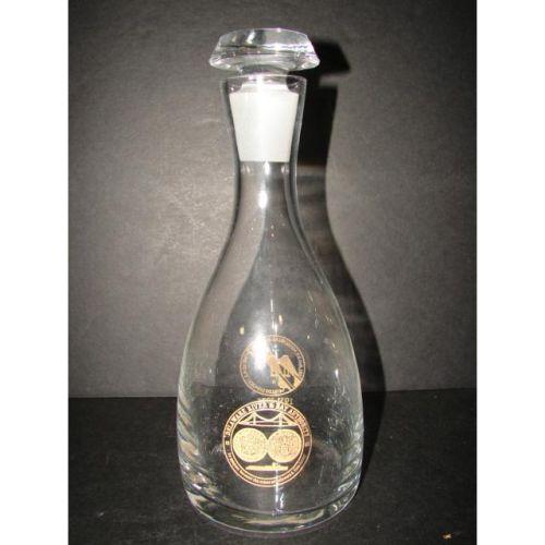 LENOX CRYSTAL DELAWARE MEMORIAL BRIDGE 25TH ANNIVERSARY DECANTER WITH STOPPER. Decorated with the etched seal of the Delaware River & Bay Authority and an etched seal of the Delaware Memorial Bridge and marked 1951-1976. Marked on bottom. 11” H. From the Estate of Governor Elbert N. Carvel (Governor of Delaware 1949-1953, 1961-1965) & Mrs. Ann Valliant Carvel.