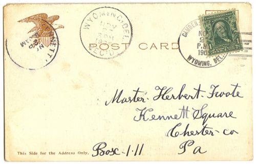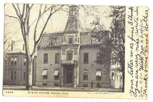 DOVER, DELAWARE POSTCARD. Depicts the State House in Dover, Del. Marked with text "4295/STATE HOUSE, DOVER, DEL./Illustrated Post Card Co." 1905 postmark on reverse.