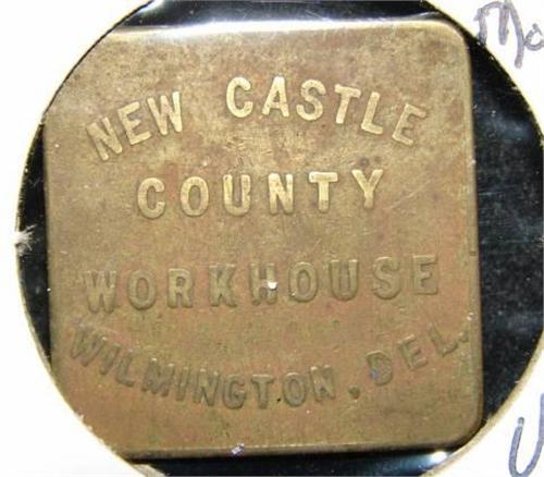 DELAWARE PRISON COIN. Marked “New Castle County Workhouse/Wilmington, Del.” and “Good for $1.00 in Trade” on reverse.