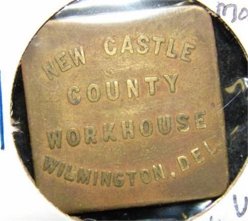 DELAWARE PRISON COIN. Marked “New Castle County Workhouse/Wilmington, Del.” and “Good for $1.00 in Trade” on reverse.