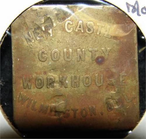 DELAWARE PRISON COIN. Marked “New Castle County Workhouse/Wilmington, Del.” and “Good for $1.00 in Trade” on reverse.