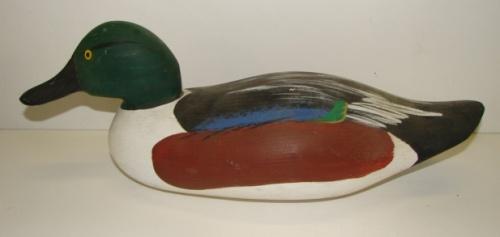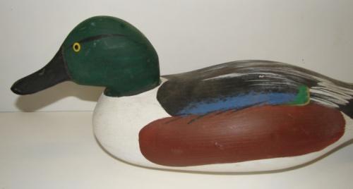 NOBLE GILBERTON DOVER, DELAWARE SHOVELER DRAKE DECOY. Signed on bottom “Noble Gilberton/Dover, Del.” 15” L