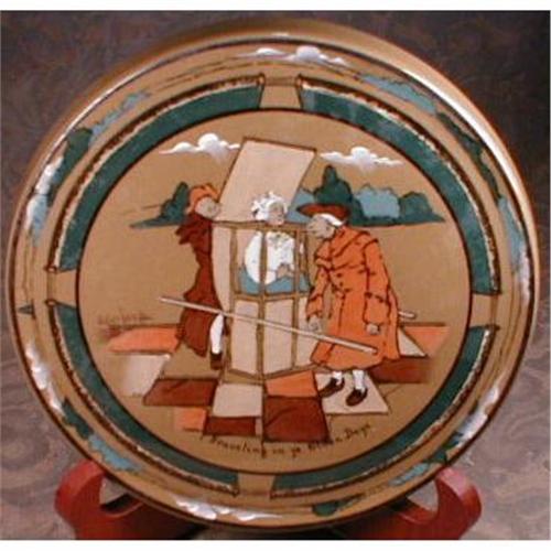 Antique Buffalo Pottery Deldare tea tile / trivet. The scene is