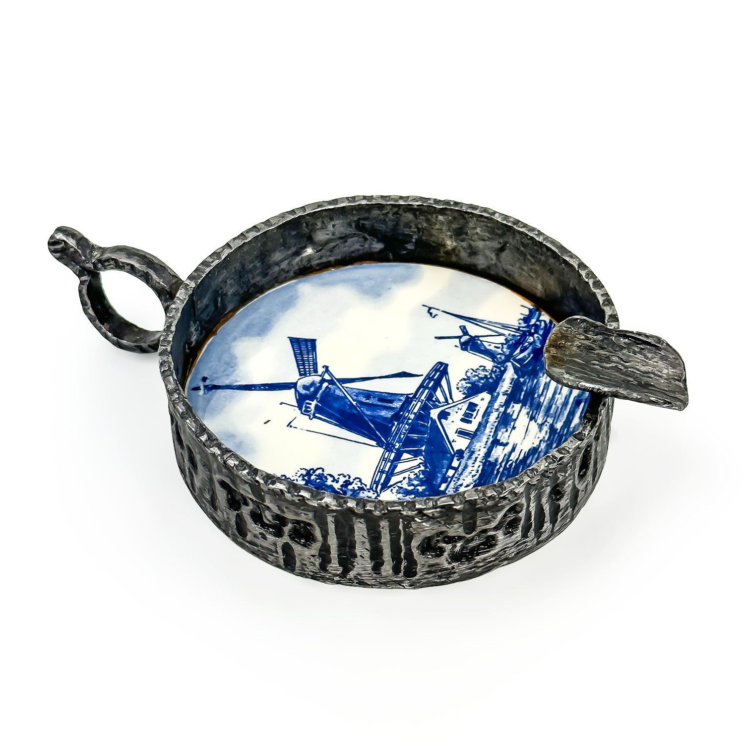 #8873 - VINTAGE UNMARKED RUSTIC LOOKING BLUE DELFT TILE & METAL ASHTRAY. MEASURES: 3.75” (9.5 CM) DIAMETER AND 5.5” (14 CM) LONG***ITEM(S) LOCATED IN LETHBRIDGE ALBERTA. FREE TRANSPORT TO EDMONTON OFFICE AVAILABLE FOR THIS AUCTION. WORLDWIDE SHIPPING IS AVAILABLE FOR ALL ITEMS