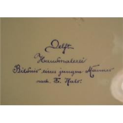 Delft Portrait Plate after Frantz Hals. 12-1/2" with blue and white painting of nobleman in upper nobility 17th century costume. Nicely painted. Provenance on back.