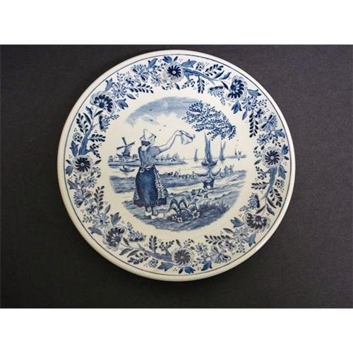 CLASSIC DELFTS PLATE, MADE IN HOLLAND BY ROYAL SPHINX MAASTRITCH, SIGNED, as per our images - CHARMING DECORATIONS, DEPICTING YOUNG GIRL WAVING GOODBYE TO FISHERMAN, IN THE BACKGROUND CLASSIC AND MOSTLY ALWAYS PART OF DELFTS PLATES - WINDMILL, CLASSIC BLUE AND ANTIQUE WHITE BACKGROUND, Excellent condition, free from chips or cracks,Measuring about 8 1/2 in diam., US Buyer please remit 9.00 for shipping plus insurance.THANKS.