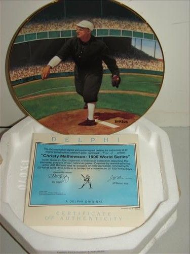 THE BRADFORD EXCHANGE / DELPHI "CHRISTY MATHEWSON: 1905 WORLD SERIES" 8.25" COLLECTORS PLATE. PLATE #916A. TENTH IN THE "LEGENDS OF BASEBALL" COLLECTION. AS SHOWN. VIEW PICTURE FOR DETAIL.