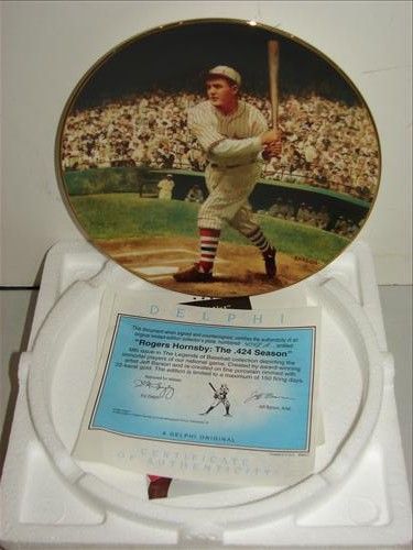 THE BRADFORD EXCHANGE / DELPHI "ROGERS HORNSBY: THE .424 SEASON" 8.25" COLLECTORS PLATE #4048A. FIFTH IN THE "LEGENDS OF BASEBALL" COLLECTION. AS SHOWN. VIEW PICTURE FOR DETAIL.