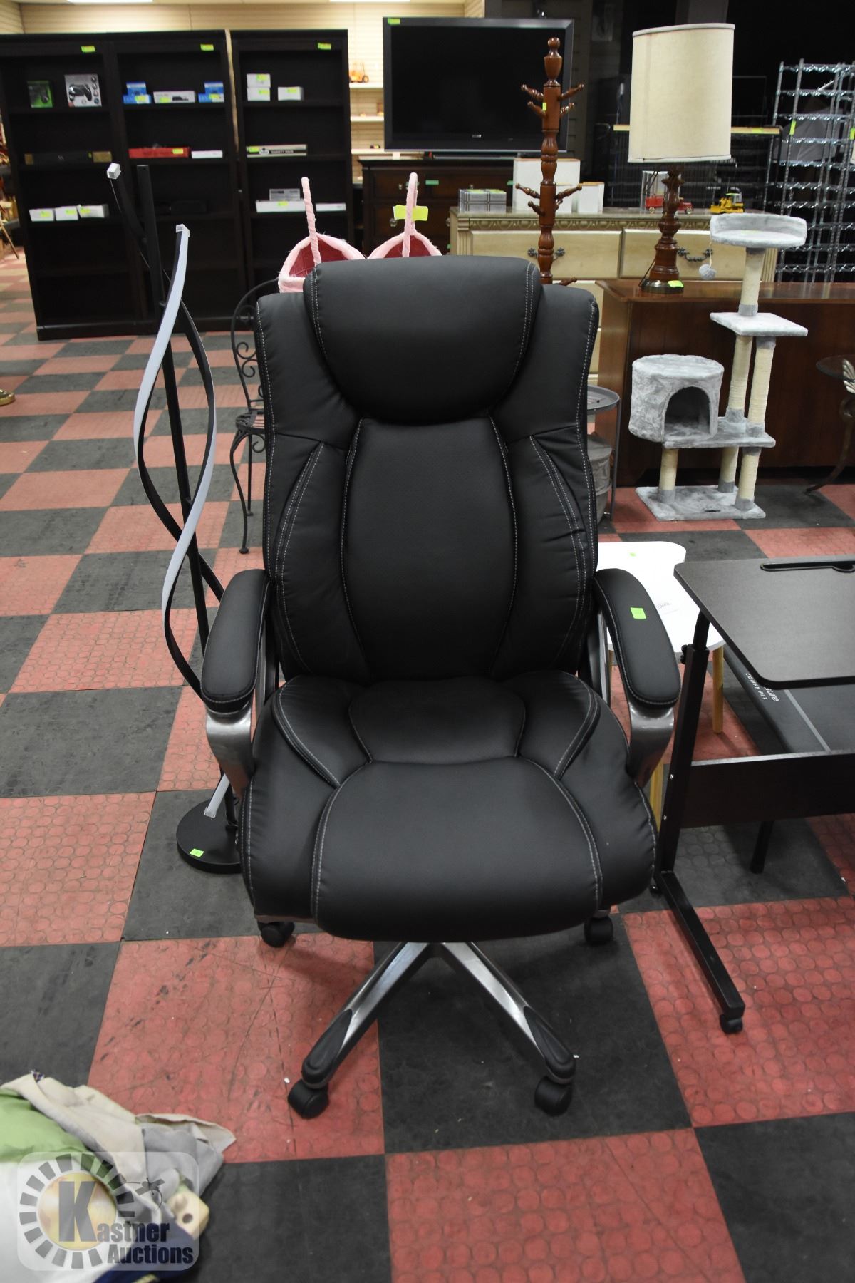 DELUXE BLACK LEATHER HYDRAULIC LIFT OFFICE CHAIR