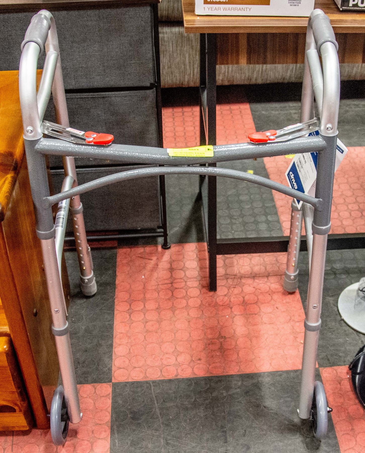 DELUXE FOLDING WALKER 2-BUTTON WITH 5" WHEELS