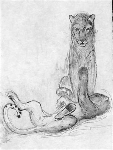 23 superbes gravures mêlant diverses techniques (eau-forte, pointe sèche, vernis mou...) dont les degrés de morsure donnent un véritable relief aux compositions : plat sup. de la couverture, 19 doubles pages et 3 pleines pages illustrant le monde animal : lion, tigre, serpent, singe...