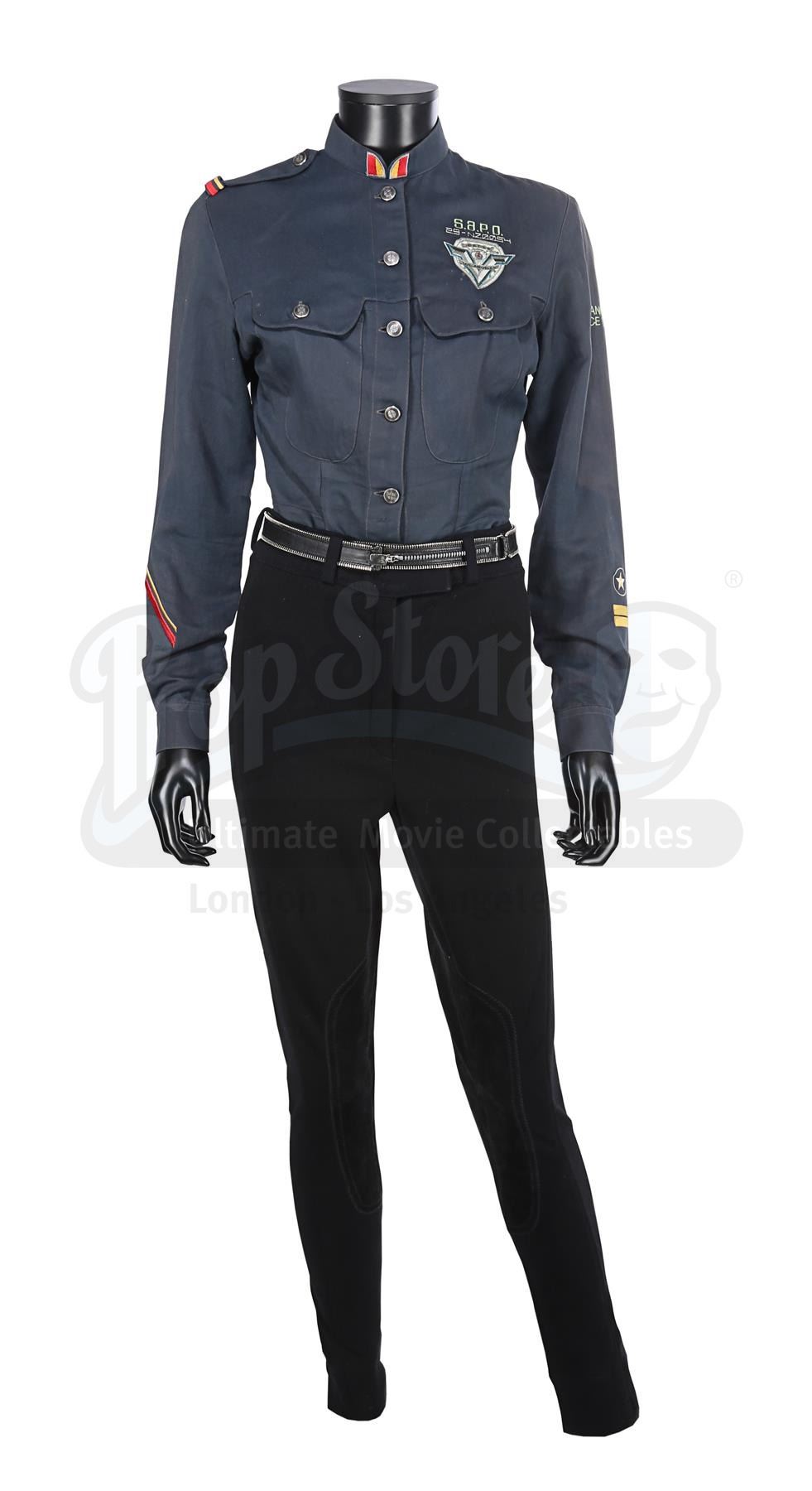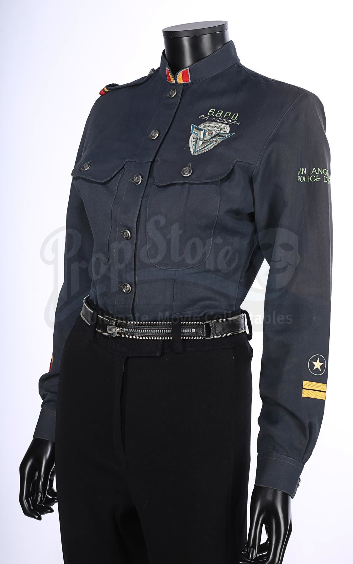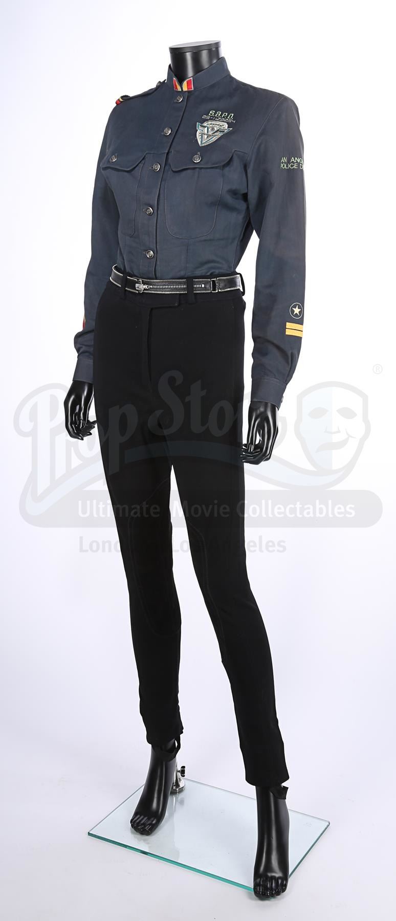 A San Angeles female police uniform from Marco Brambilla's sci-fi action film Demolition Man. Female police officers wore their uniforms throughout the film as they served the city of San Angeles, which was terrorised by dangerous criminal Simon Phoenix (Wesley Snipes) after his escape from cryo-prison.