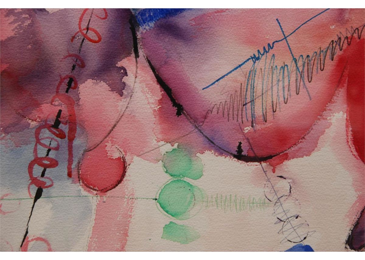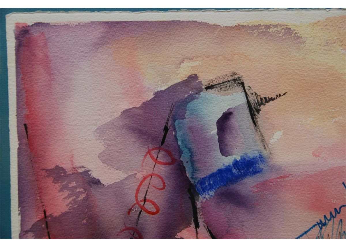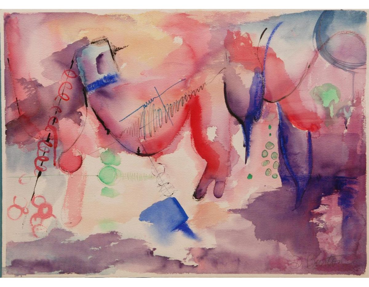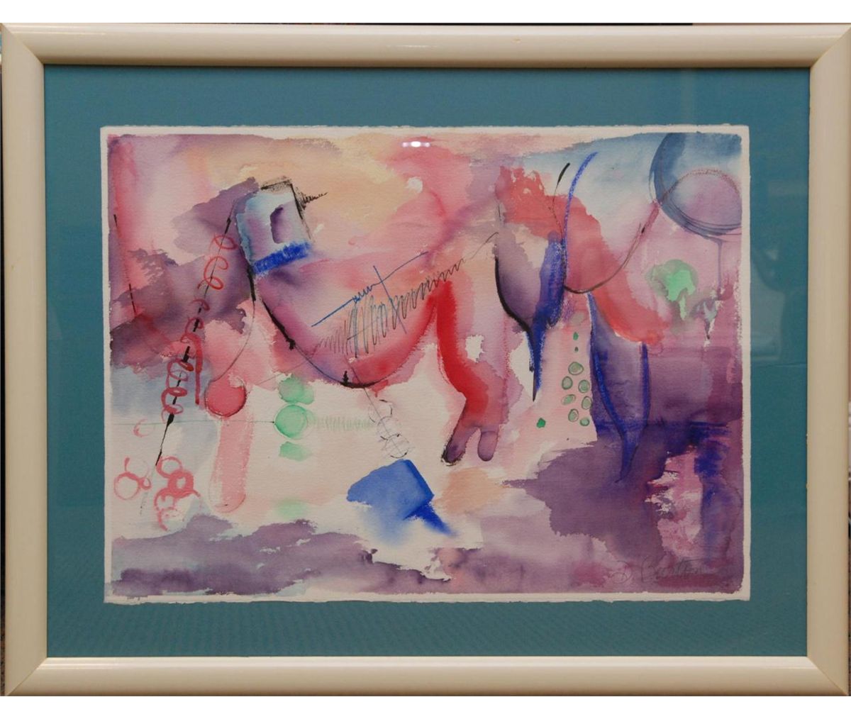 Dennis Eugene Norman Burton (CANADIAN, 1933) watercolor on rag paper depicting abstract freeform multicolor designs. Signed to lower right in pencil 'D. Burton'. Circa 1960. Measures 22 1/4" height x 30" width + 4 1/2" (56.5cm x 76.2cm + 11.4cm). Provenance: Flueridor Family Collection, Boynton Beach, Florida. Has Richard Beau Lieu & Associates art appraisal stating a replacement value of $12,000.