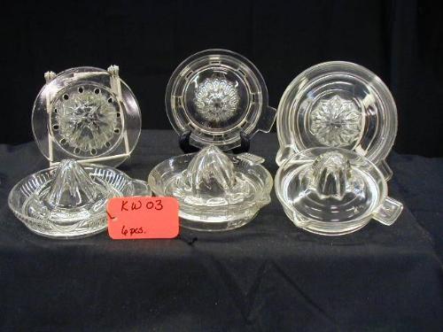 DEPRESSION ASST. CLEAR GLASS REAMERS INCLUDES (2) FENTON, 6PCS