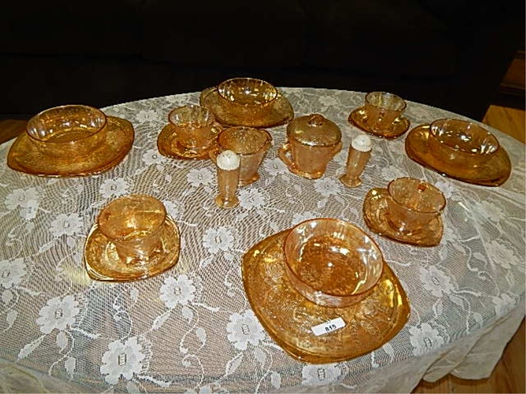 DEPRESSION GLASS - AMBER GLASS - DISH SET - 28 PC TTL