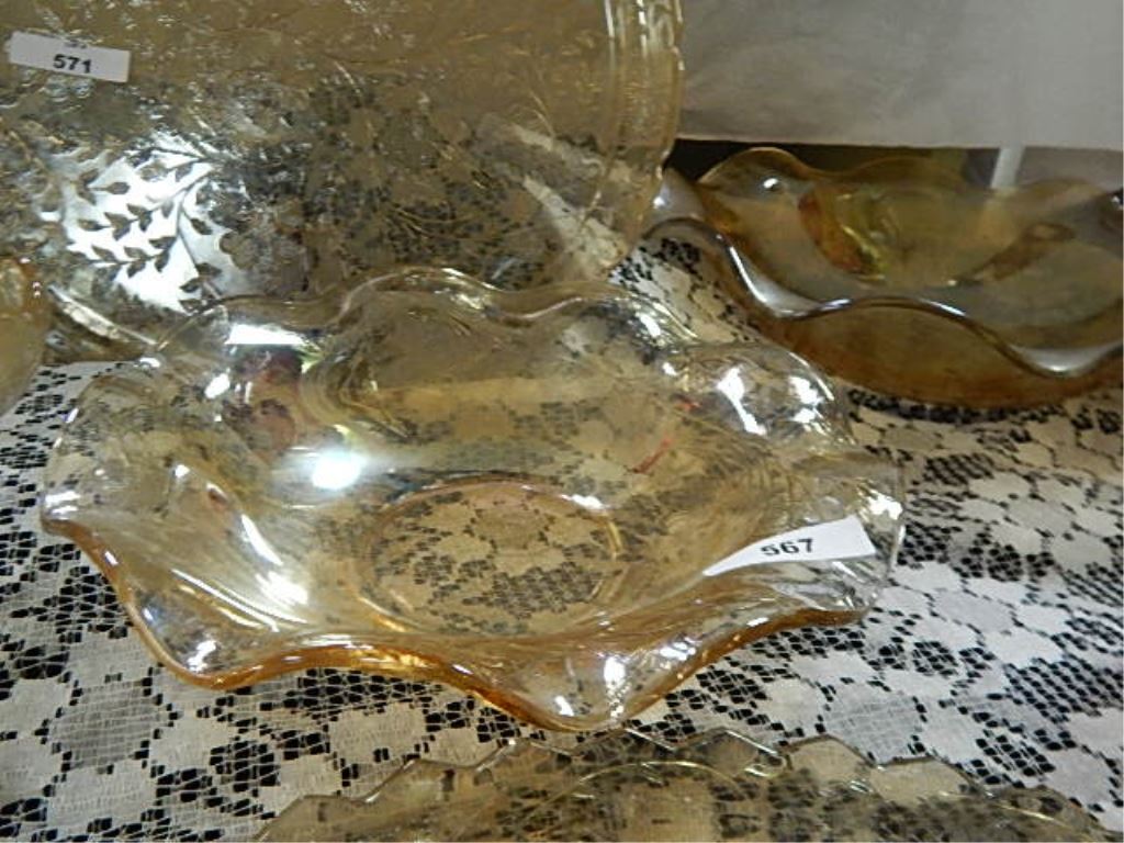 DEPRESSION GLASS - AMBER GLASS - FLORAL SHAPED BOWL