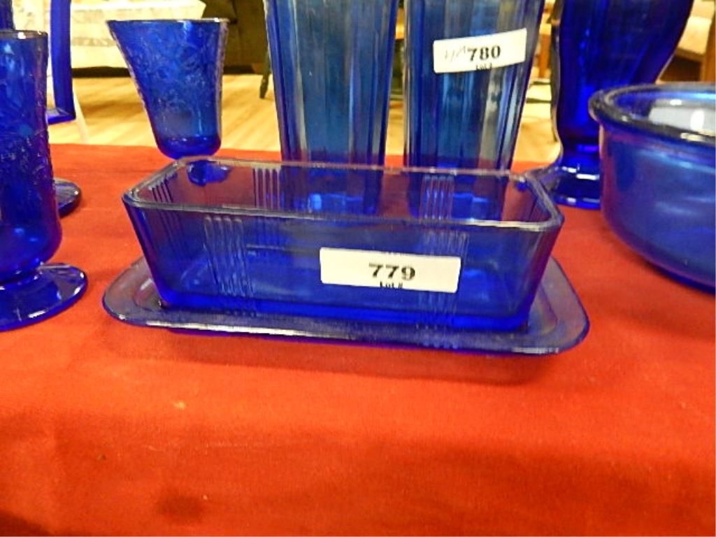 DEPRESSION GLASS - COBALT BLUE - BUTTER DISH