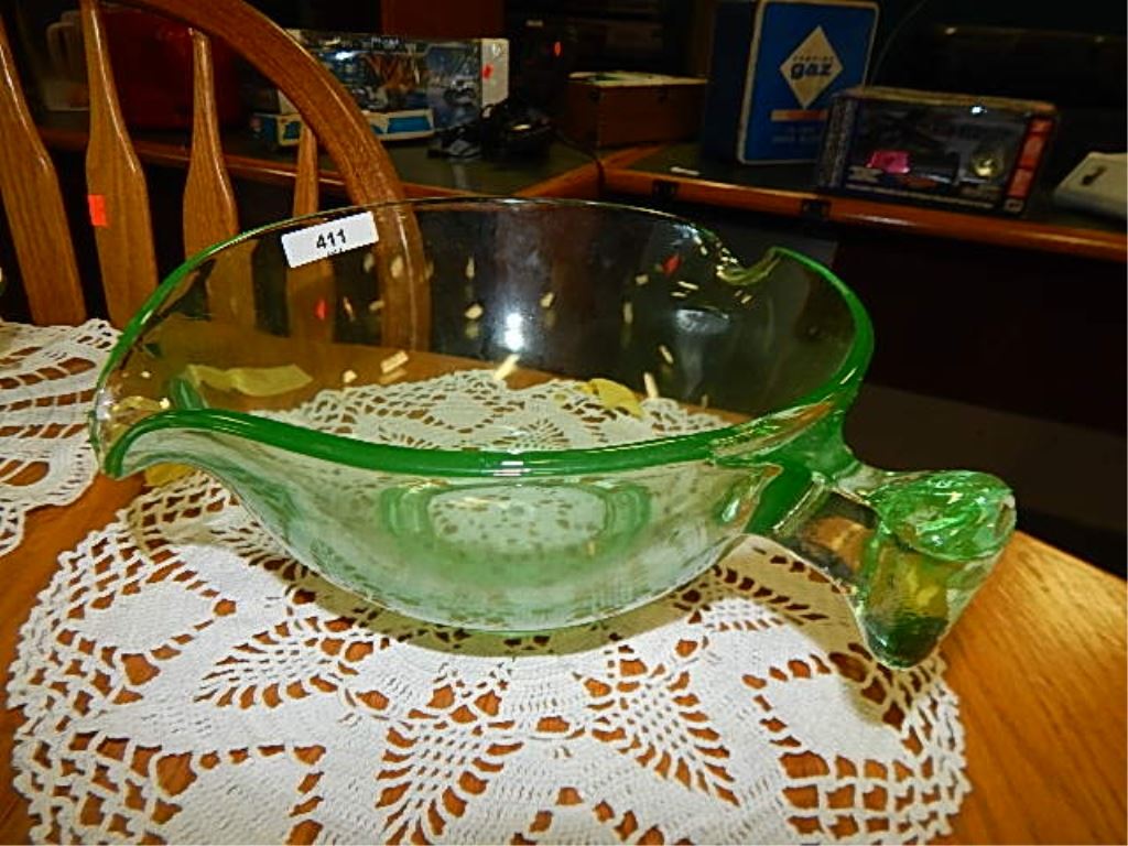 DEPRESSION GLASS - EMERALD GLASS - DOUBLE SPOUTED BOWL