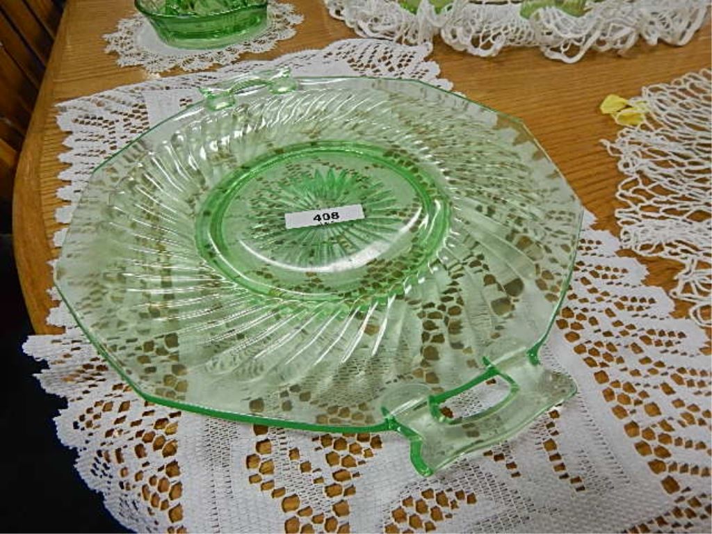 DEPRESSION GLASS - EMERALD GLASS - SWIRL SERVING PLATTER