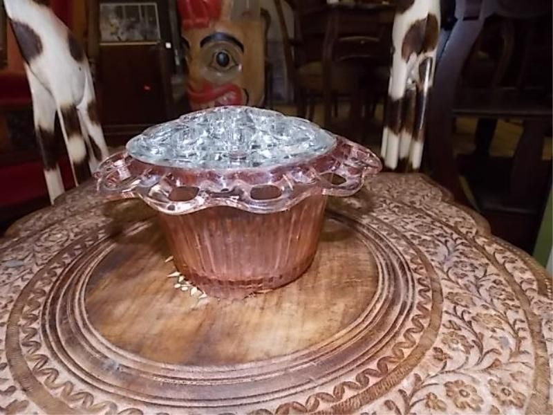 DEPRESSION GLASS FLOWER HOLDER WITH STAND