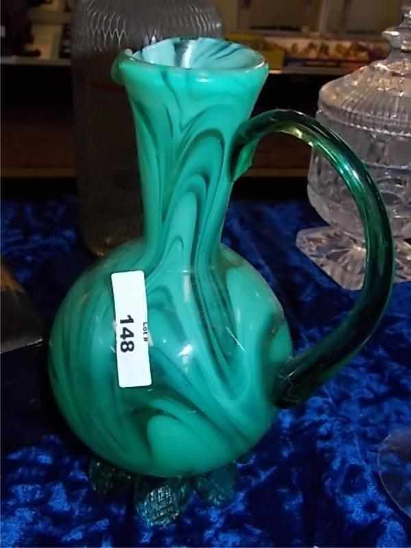 DEPRESSION GLASS GREEN PITCHER