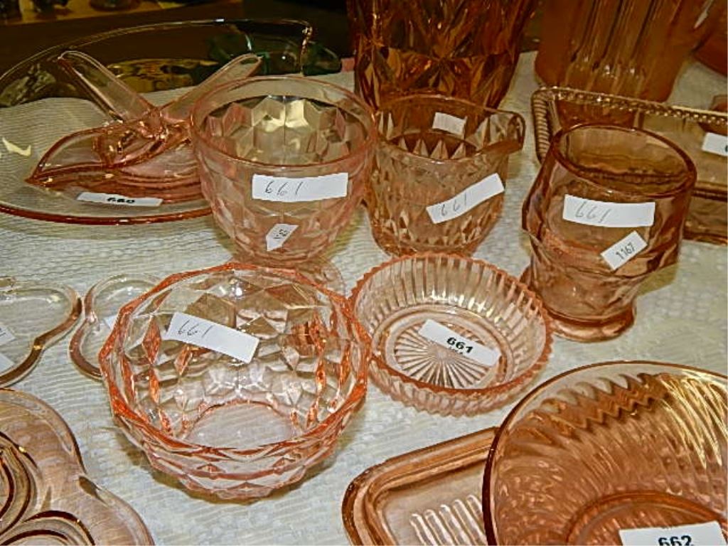 DEPRESSION GLASS - ROSE GLASS - ASSORTMENT - 7 PC TTL