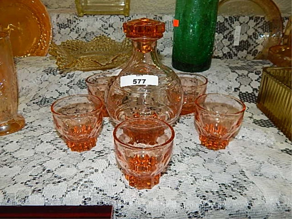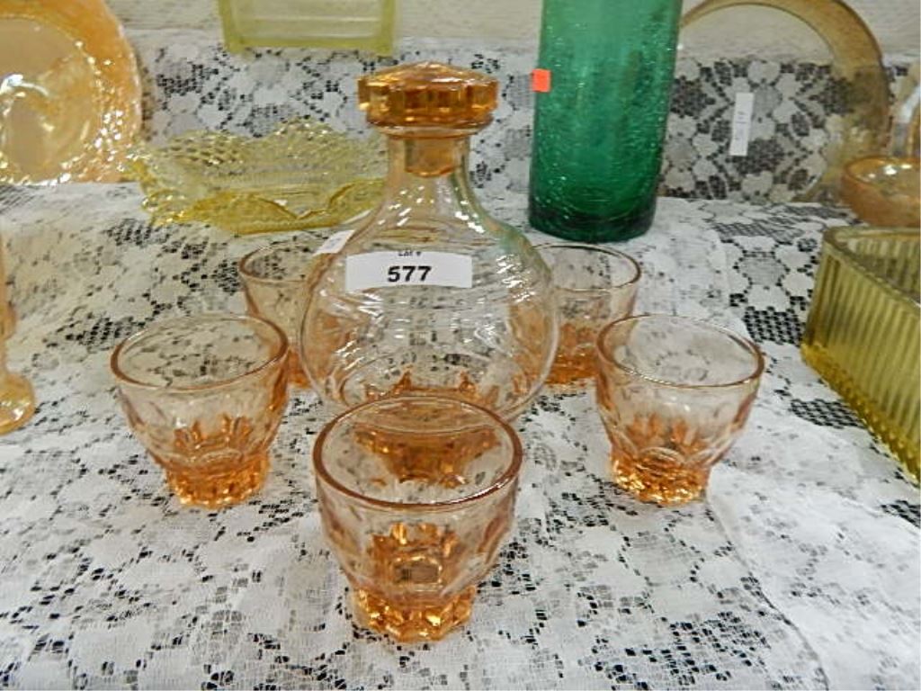 DEPRESSION GLASS - ROSE GLASS - DECANTER & GLASSES - 6 PC TTL
