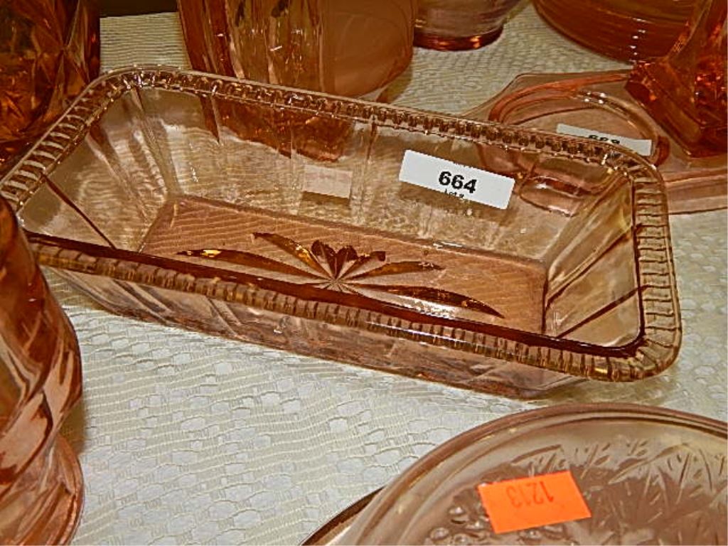 DEPRESSION GLASS - ROSE GLASS - LOAF SHAPED SERVING DISH