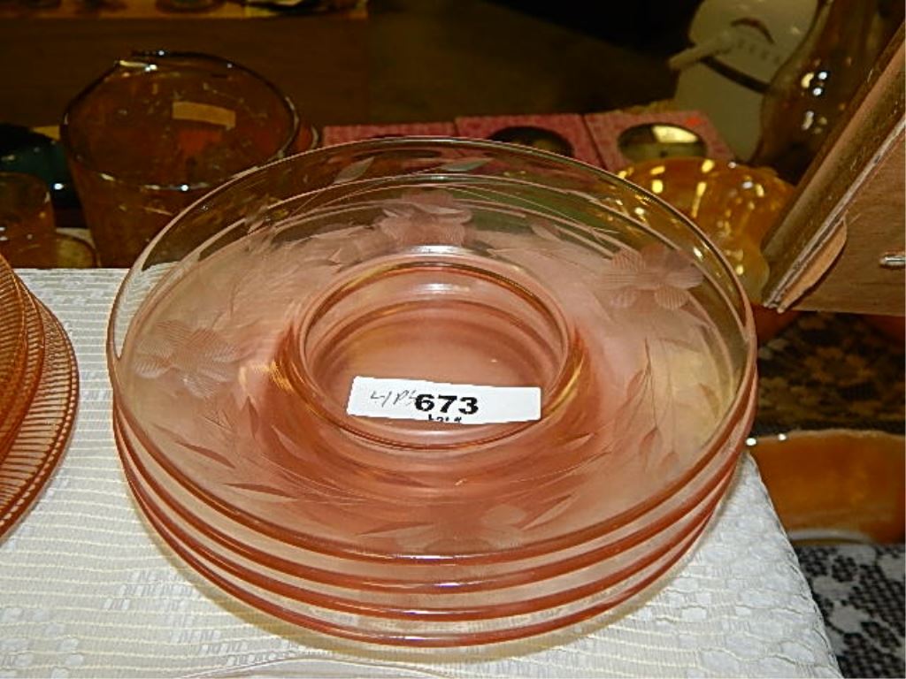 DEPRESSION GLASS - ROSE GLASS - PLATES - 4 TTL