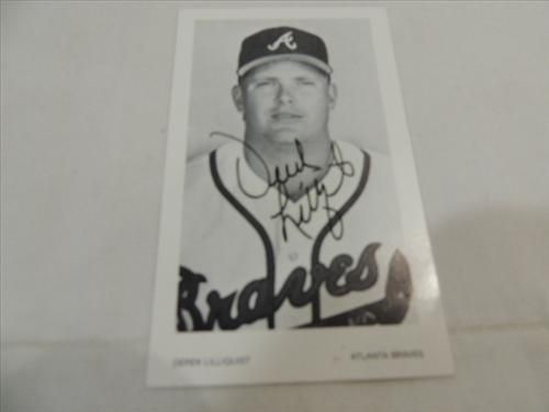 DEREK LILLIQUIST SIGNATURE AUTOGRAPH ON PHOTO CARD. COA STICKER FROM JSA. AS SHOWN. VIE WPICTURE FOR DETAIL. PLEASE BE ADVISED, AND INFORMED REGARDING SIGNATURES OR AUTOGRAPHS THAT WE SELL AT AUCTION: WE ARE NOT AUTHENTICATORS, AND WE DO NOT AUTHENTICATE, OR VALIDATE ANY AUTOGRAPHS OR SIGNATURES THAT WE OFFER AT AUCTION. SOME AUTOGRAPHS OR SIGNATURES MAY COME WITH AN AUTHENTICATION FROM ANY ONE OF LITERALLY HUNDREDS OF AUTHENTICATORS ACROSS THE COUNTRY, AND AROUND THE WORLD. WE DO NOT ENDORSE ANY AUTHENTICATOR, NOR DO WE GUARANTEE THAT ANY AUTOGRAPH OR SIGNATURE IS AUTHENTIC, OR THAT IT WILL PASS AUTHENTICATION BY ANY AUTHENTICATOR. ALL AUTOGRAPHS OR SIGNATURES ARE SOLD